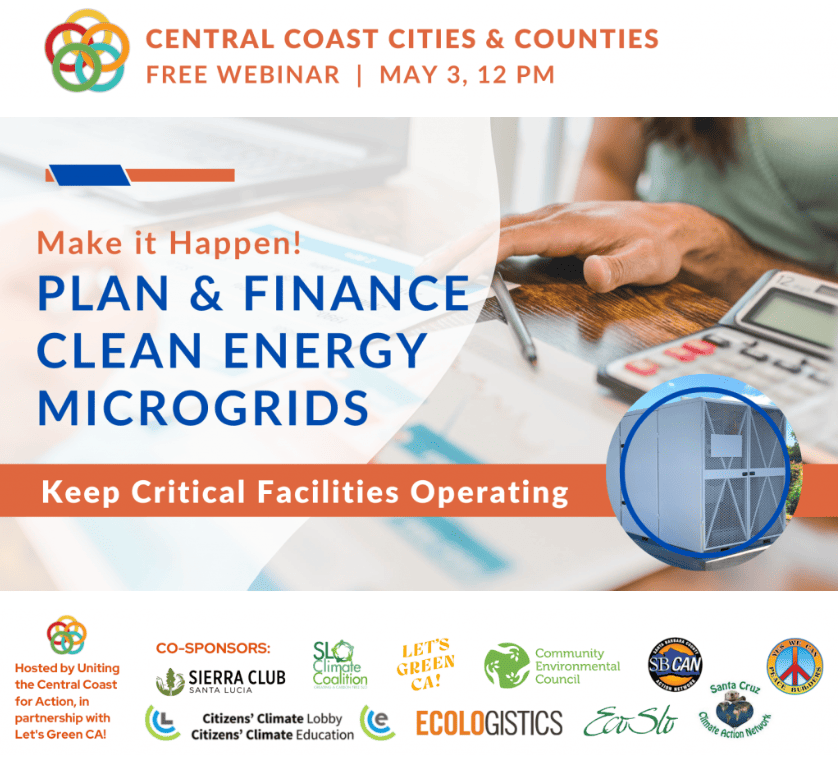 This was the fifth in a series of webinars on local clean energy presented by Uniting the Central Coast for Action in partnership with Let’s Green CA! View our most recent presentation here.
